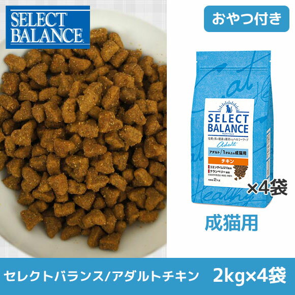 【キャットフード ドライフード 猫用フード 猫のエサ 猫のご飯 餌 エサ えさ ご飯 ごはん カリカリ かりかり】【icat i dog 楽天】【猫 キャットフード】SELECT BALANCE セレクトバランス キャットフード アダルト チキン 2kg×4袋まとめ買いセット【ドライフード】 アダルト チキン2kg×4袋、国産おやつ2点(おやつは届いてからのお楽しみ♪