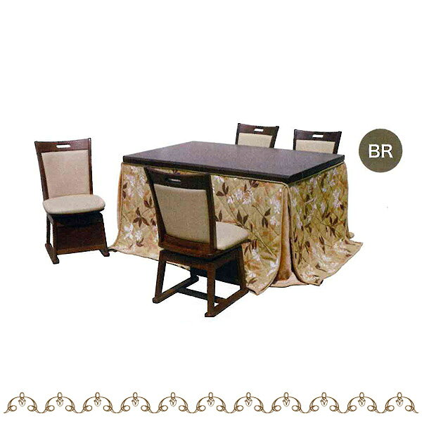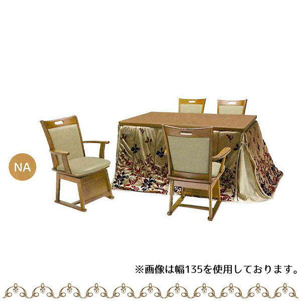 【お得なクーポン配布中★】ハイタイプこたつセット ダイニングこたつセット 長方形 4人掛け (くるみ 135 NA/BR+ゆうひ 肘なし×4+プライム 135(135×90用))