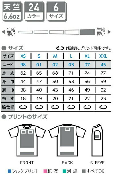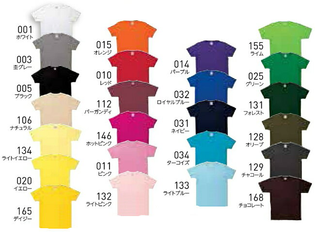 カラー 003:杢グレー 005:ブラック 106:ナチュラル 134:ライトイエロー 020:イエロー 165:デイジー 015:オレンジ 010:レッド 112:バーガンディ 146:ホットピンク 011:ピンク 132:ライトピンク 014:パープル 032:ロイヤルブルー 031:ネイビー 034:ターコイズ 133:ライトブルー 155:ライム 025:グリーン 131:フォレスト 128:オリーブ 129:チャコール 168:チョコレート ※ホワイトはこちら サイズ XS〜XXL ※XXL以降は割り高になります。