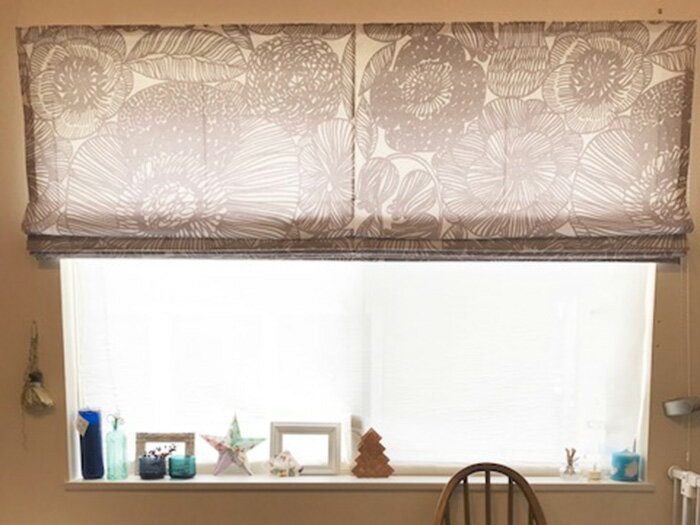 花柄でありながら、クールで甘くなりすぎないKURJENPOLVIは、シェードに仕立ててインテリアの中で大きく使う生地として最適です。
